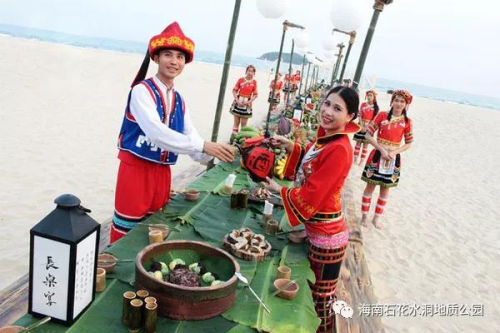 在这里,你可以品尝黎族特色长桌宴,观赏黎苗歌舞、黎童器乐表演……